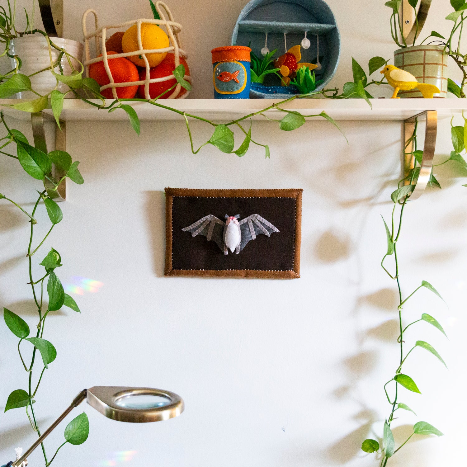 Hand sewn one-of-a-kind felt mounted creatures mounted on frames (sold individually)